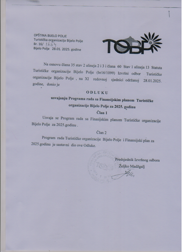 ODLUKE SKUPŠTINE TURISTIČKE ORGANIZACIJE BIJELO POLJE
